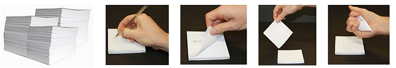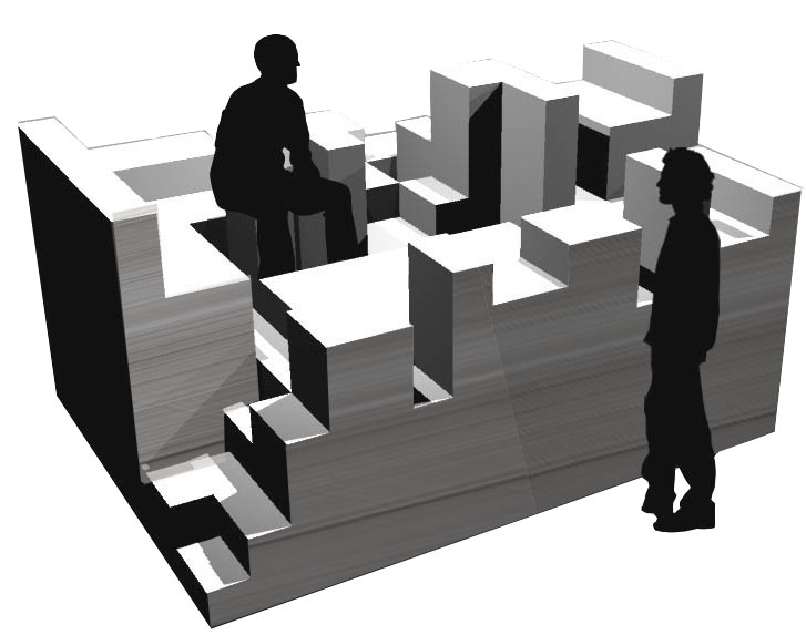 Studenten wie Professoren können über die aus dem Blockpapier gebildeten Stufen die Sitzgruppe betreten und dort während des Unterrichtes Notizen direkt auf dem Papierstapel machen. Nach dem Unterricht werden diese Notizen abgetrennt und mitgenommen. So wird das Blocksystem nach und nach unregelmäßig kleiner und am Ende ganz verschwunden sein.